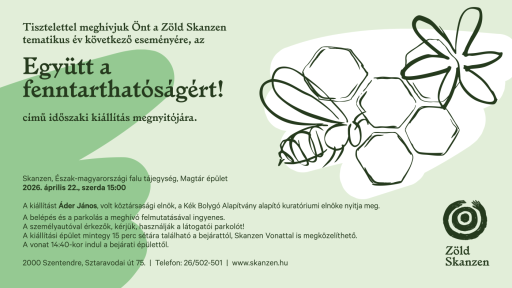 A klímaelőadást követően, 2026. április 22-én, szerdán 15:00 órakor Áder János részt vesz, és beszédet mond a Zöld Skanzen tematikus év eseményén, az Együtt a fenntarthatóságért! című időszaki kiállítás megnyitóján a szentendrei skanzenben.