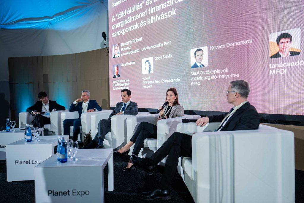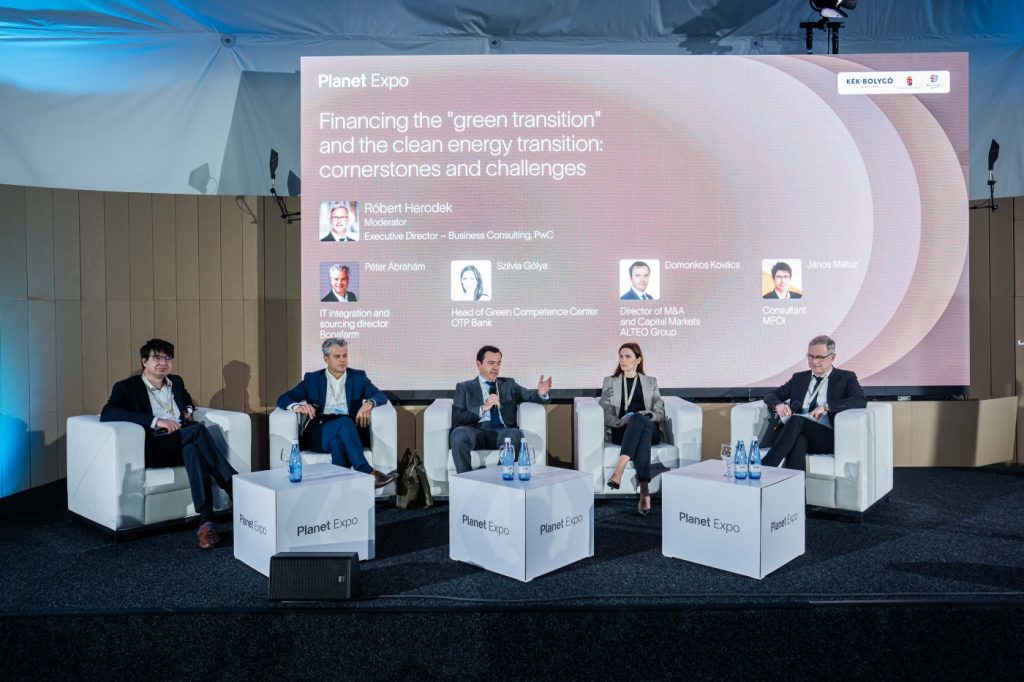 A cikk „A zöldátállás és a tiszta átmenet finanszírozása: sarokpontok és kihívások” című kerekasztal-beszélgetés (Gólya Szilvia – OTP Bank, Ábrahám Péter – Bonafarm, Kovács Domonkos – Alteo, Matuz János – MFOI, moderátor: Heródek Róbert – PwC) alapján készült, amely a Planet Budapest A tiszta energia jövője szekciójának előadása volt 2026. február 26-án.